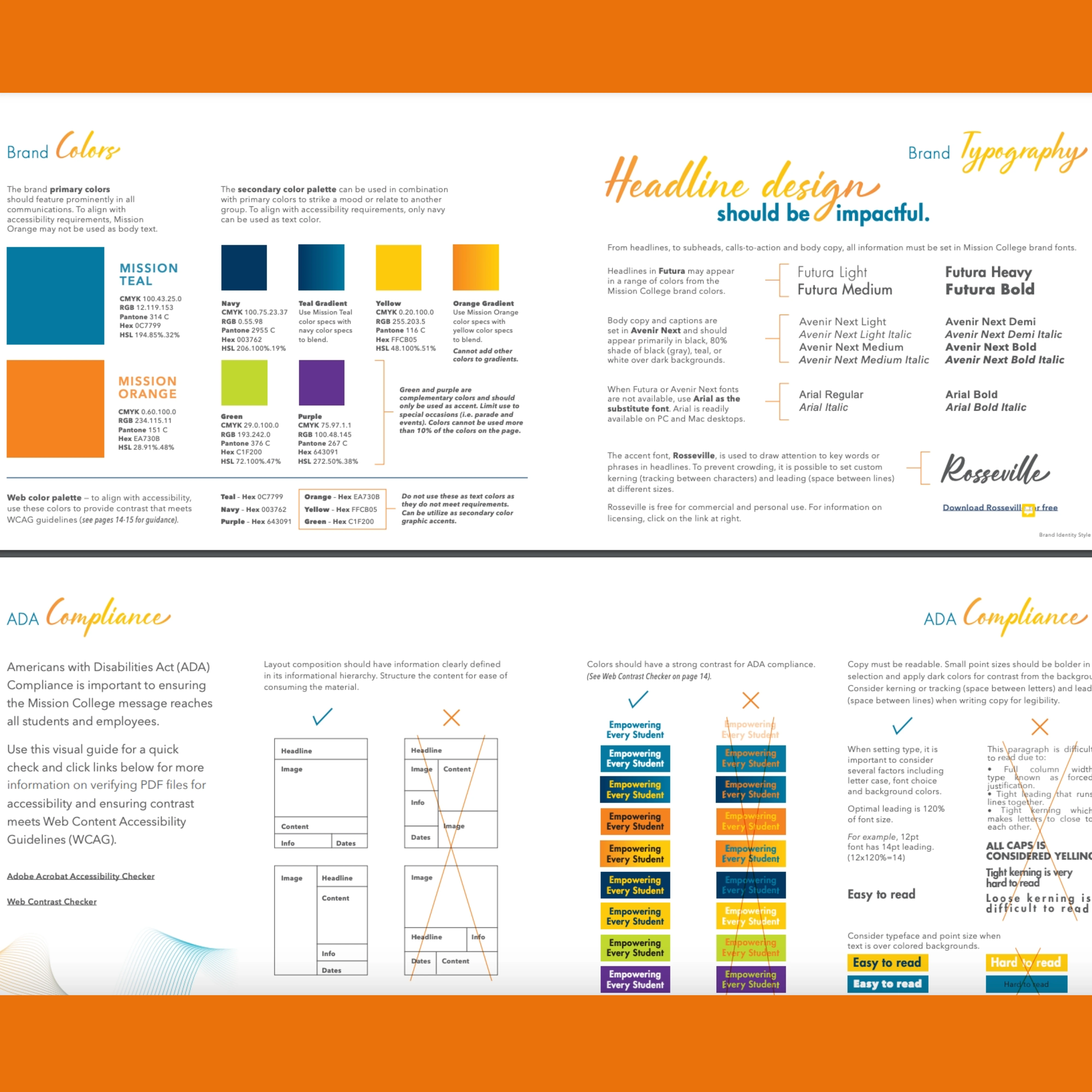 New brand style guide for for Mission College.