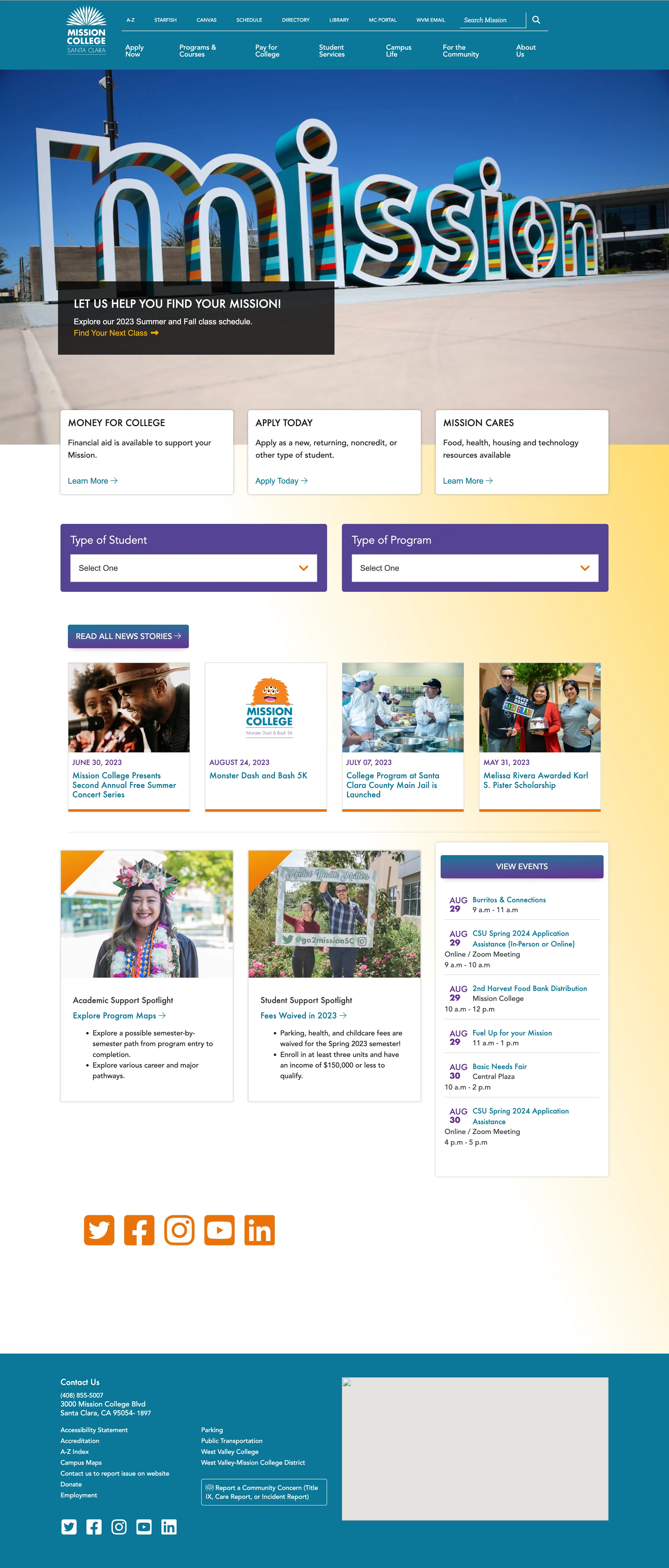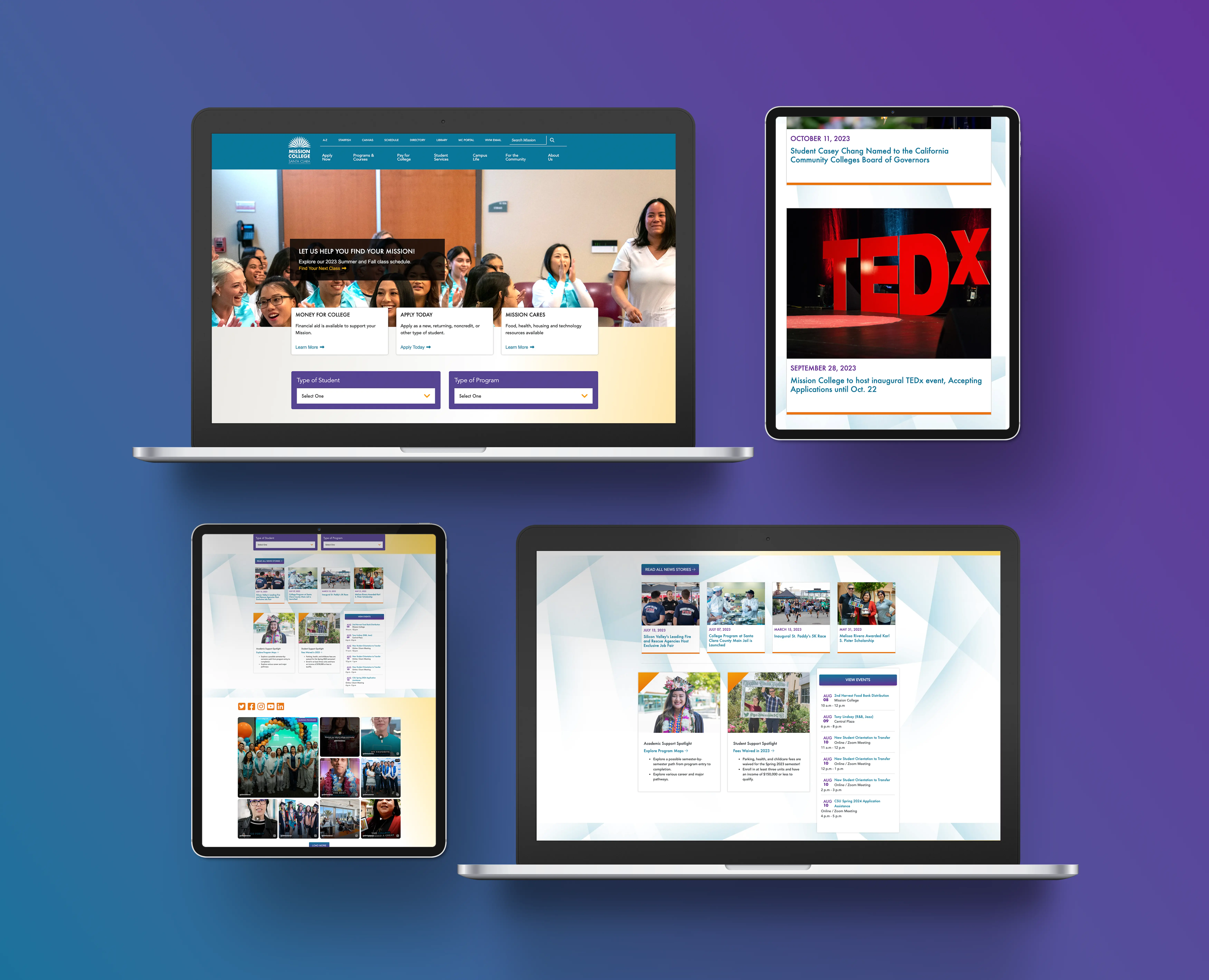 A redesigned and refreshed UX/UI and frontend development project for Mission College.